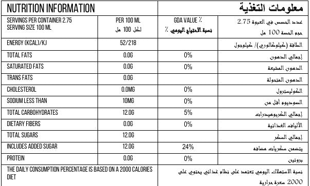 See product visuals for Nutritional Table